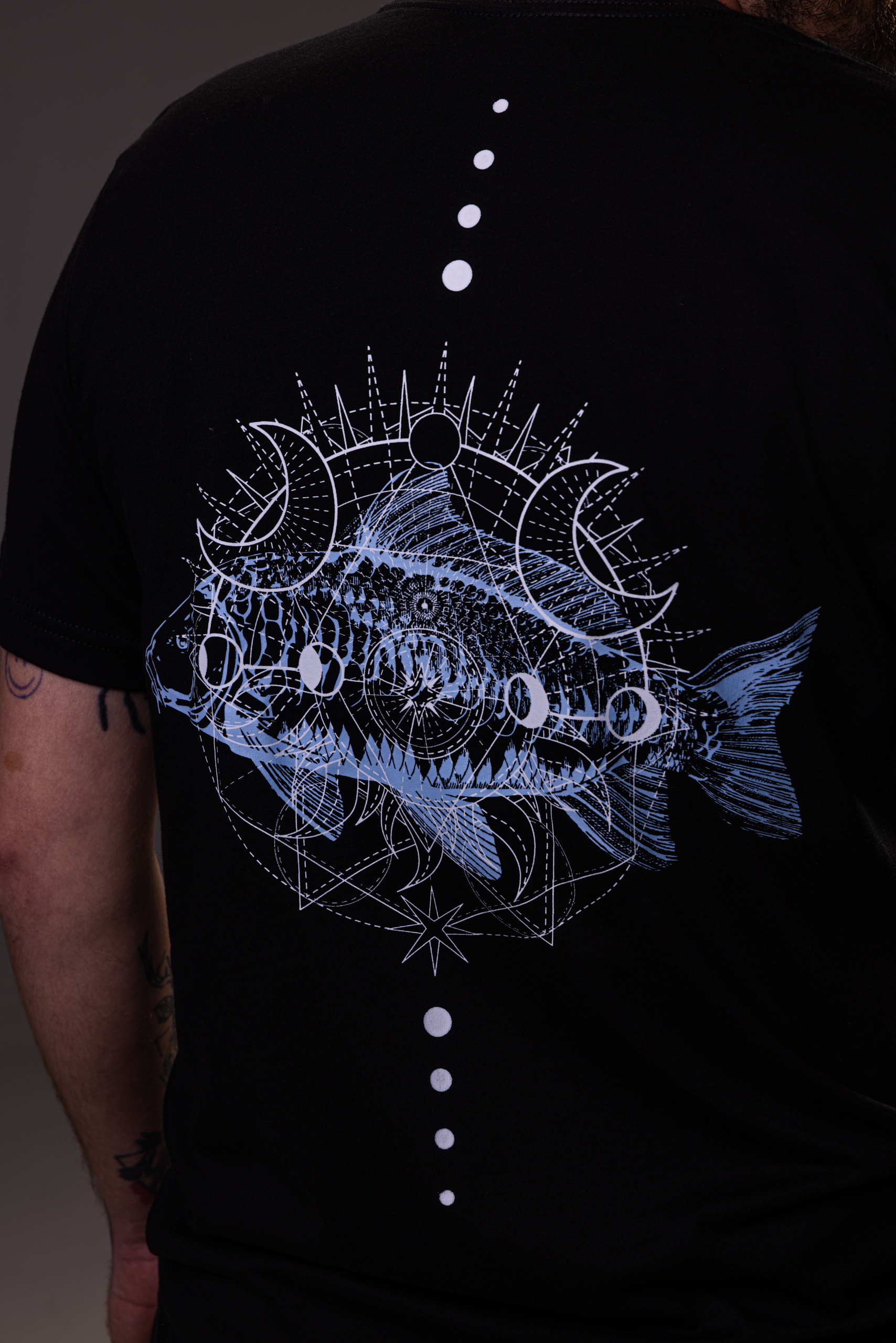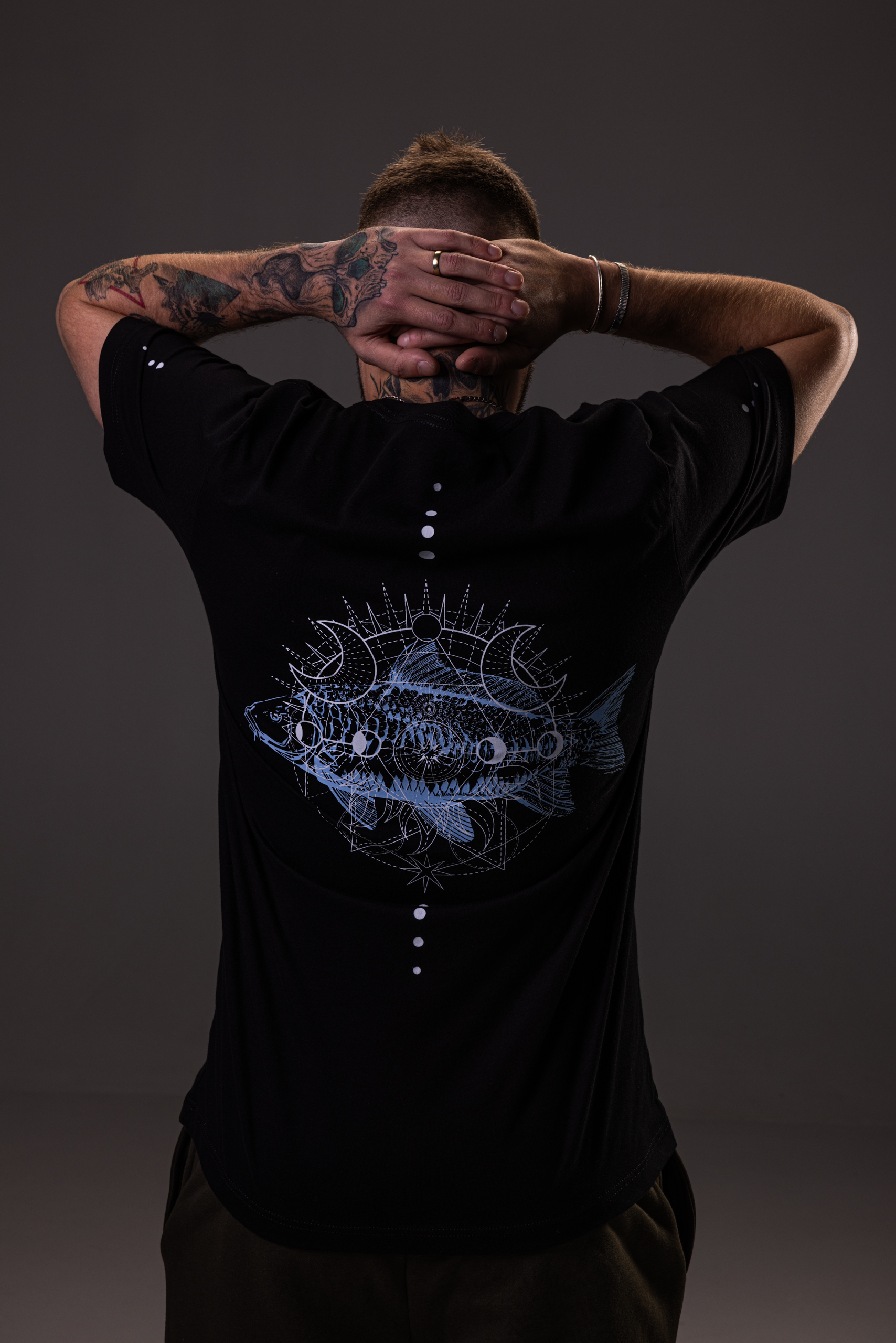 Part of the ‘Phased’ Collection, which is inspired by the moon phases and natural elements, our Phase 1′ T-Shirt is a stunning, quality piece to add to your fishing apparel collection, we are very proud of the stunning lunar artwork on display. ~ Available in Olive or Black. ~ If you are purchasing clothing please check the size guide or even better get a friend or your better half to measure your chest and waist! We are a young brand and really want to minimise returns due to incorrect sizes. Happy shopping (and angling) from Pete, Dan and Andy (the Inspired Angling team)
